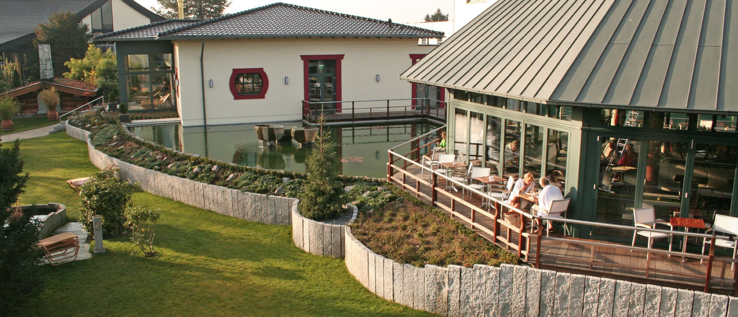 Das nächste Manko ist für mich die Lage des Restaurants. Das Restaurant selbst befindet sich außen im Garten umgeben von einem Teich. Auch hier ist mir durch einen stark besuchten Tag aufgefallen, dass die Plätze sehr spärlich sind. Zudem gibt es keine extra Vorrichtungen, an denen die nassen Handtücher aufgehängt werden können; diese müssen an den Platz mitgenommen werden. Die Auswahl der Speisen ist gut, von asiatischen Gerichten, Klassikern wie Burger und Pasta bis hin zu vegetarischen Gerichten, wird hier jeder fündig. Das Preis-/Leistungsverhältnis stimmte für mein Gericht jedoch nicht; ich bestellte ein asiatisches Gericht mit Hähnchen und Gemüse in einer Sojasoße. Dieses schmeckte ok, war den Preis von 15 Euro jedoch nicht wert. Hier erhält man für diesen Preis in anderen Thermen sicherlich eine bessere Qualität.